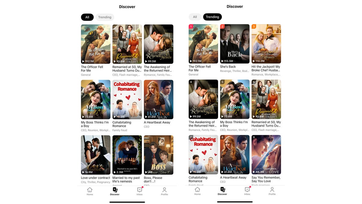 At the moment, everything looks like romantic potboilers, but since microdramas are popular and getting more so even as I type, that’s bound to change. You’ve probably seen microdramas and the various apps with which you watch them in your social media ads — they’re short movies or TV shows that last one or two minutes per episode.